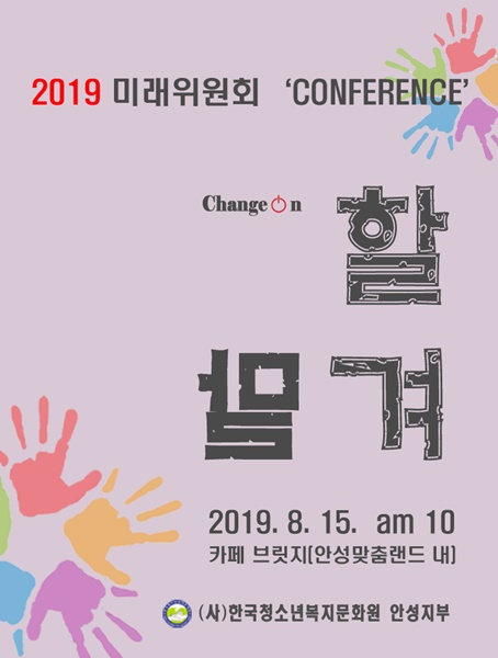 (»ç)Çѱ¹Ã»¼Ò³âº¹Áö¹®È¿ø ¾È¼ºÁöºÎ(ÁöºÎÀå ±è¿µ½Ä)´Â ¿À´Â 15ÀÏ ¿ÀÀü 10½Ã ¾È¼º¸ÂÃã·£µå Ò® Ä«Æä ºê¸´Áö¿¡¼ 2019 ¹Ì·¡À§¿øÈ¸ ÄÁÆÛ·±½º¡°Change on¡±À» °³ÃÖÇÑ´Ù.