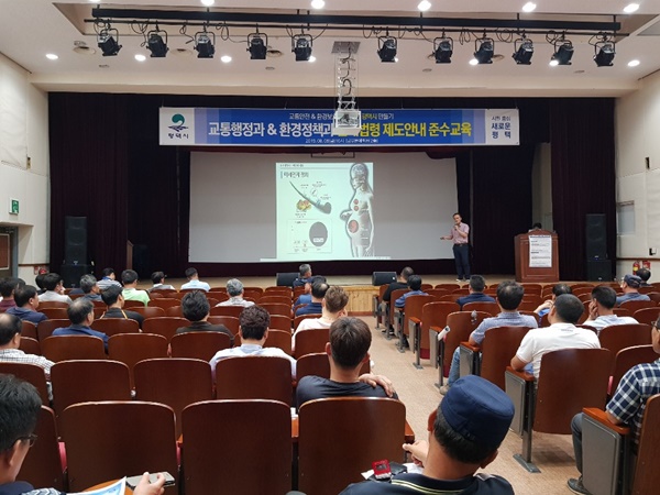 ÆòÅýÃ(½ÃÀå Á¤Àå¼±)´Â Áö³ 9ÀÏ ³²ºÎ¹®È¿¹¼úȸ°ü ¼Ò°ø¿¬Àå¿¡¼ ÀÚµ¿Â÷ Á¤ºñ °ü·Ã »ç¾÷ÀÚ 100¿©¸íÀ» ´ë»óÀ¸·Î ȯ°æ¹ý°ú ÀÚµ¿Â÷°ü¸®¹ý Áؼö»çÇ× ¹× ¹Ì¼¼¸ÕÁö Á¤Ã¥ ¼³¸íȸ¸¦ °³ÃÖÇß´Ù.