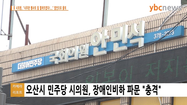[¾È³çÇϽʴϱî YBCnewsÀÔ´Ï´Ù. ¿À»ê½ÃÀÇȸ ´õºÒ¾î¹ÎÁÖ´ç ¼Ò¼Ó ½ÃÀÇ¿øÀÌ ½Ã ÁÖ°üÇà»ç¿¡¼ Àå¾ÖÀÎ Â÷º°, ºñÇÏ ¹ß¾ðÀ» ÇÑ °ÍÀ¸·Î ÀüÇØÁö¸ç ÆÄ¹®ÀÌ Àϰí ÀÖ½À´Ï´Ù.]