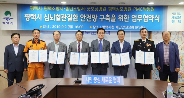 ÆòÅýð¡ Áö³ 2ÀÏ ½Ãû Àç³»óȲ½Ç¿¡¼ ÆòÅá¤¼Ûź¼Ò¹æ¼ ¹× ½É³úÇ÷°ü¼¾Å͸¦ º¸À¯Çϰí ÀÖ´Â Áö¿ª ³» 3°³ º´¿ø°ú ¡®½É³úÇ÷°üÁúȯ ¾ÈÀü¸Á ±¸ÃàÀ» À§ÇÑ ¾÷¹«Çù¾à¡¯À» ü°áÇß´Ù.