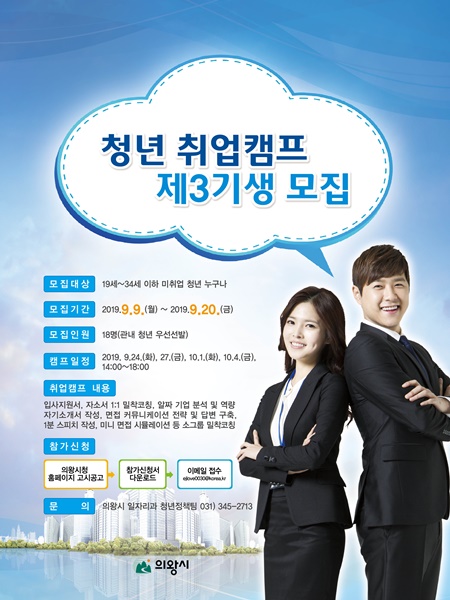 À̹ø Á¦3±â û³â Ãë¾÷Ä·ÇÁ´Â 19¼¼~34¼¼ ÀÌÇÏ ¹ÌÃë¾÷ û³âÀÌ¸é ´©±¸³ª Âü¿©ÇÒ ¼ö ÀÖ´Ù. Á¢¼ö±â°£Àº 9¿ù 9ÀϺÎÅÍ 20ÀϱîÁöÀ̸ç, ¸ðÁýÀοøÀº 18¸íÀÌ´Ù.