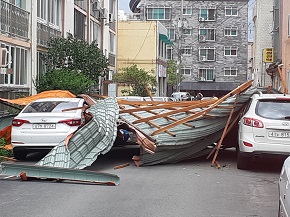 ¾ÆÆÄÆ® »óºÎ¿¡ ¼³Ä¡µÇ¾ú´ø °ÍÀ¸·Î ÃßÁ¤µÇ´Â °­ÆÇµéÀº Áö»ó¿¡ ÁÖÂ÷ÁßÀÎ Â÷·®µé À§¸¦ ¿ÏÀüÈ÷ µ¤Àº ÂüȤÇÑ ¸ð½ÀÀ» ¿¬ÃâÇß´Ù.