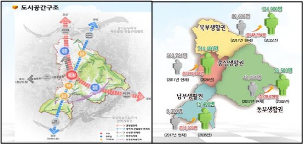 µµ½Ã°ø°£±¸Á¶´Â µµ½Ã ±â´ÉÀÇ Áý¾àÈ¿Í Åº·ÂÀûÀÎ Àα¸¹èºÐ°èȹÀ» À§ÇØ ±âÁ¸ 1µµ½É°ú 2ºÎµµ½É(¼ºÈ¯¡¤Á÷»ê, ¸ñõ¡¤º´Ãµ), 3Áö¿ªÁß½É(ÀÔÀ塤¼º°Å, û·æ, dz¼¼¡¤±¤´ö) µî 4°³ »ýȰ±ÇÀ¸·Î ±¸ºÐÇÑ´Ù´Â °èȹÀÌ´Ù.