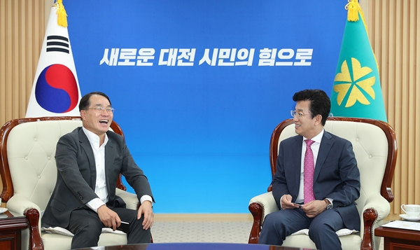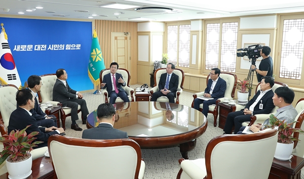 ÇãÅÂÁ¤ ´ëÀü½ÃÀåÀº À̳¯ ¢ß½Å¼¼°è ÃøÀÇ Åë±Ù »ç¾÷ºñ Ãß°¡ ÅõÀÚ ¾à¼Ó¿¡ ´ëÇØ °¨»çÀÇ ¸¶À½À» ÀüÇÏ¸ç ¡°¿ì¸® Áö¿ªÀÌ ÁßºÎ±Ç ÃÖ´ëÀÇ ¸¶À̽º(MICE)»ê¾÷ ÀüÁø±âÁö·Î °Åµì³¯ °Í¡±À̶ó¸ç ¡°´ëÀü½Ãµµ ±¹Á¦Àü½ÃÄÁº¥¼Ç¼¾ÅÍ µî°ú ¿¬°èÇØ Å« ½Ã³ÊÁö È¿°ú¸¦ ³¾ ¼ö ÀÖµµ·Ï »çÀ̾ð½ºÄÞÇ÷º½º°¡ ¿øÈ°È÷ °Ç¸³µÉ ¼ö ÀÖµµ·Ï Áö¿øÇϰڴ١±°í ¸»Çß´Ù.