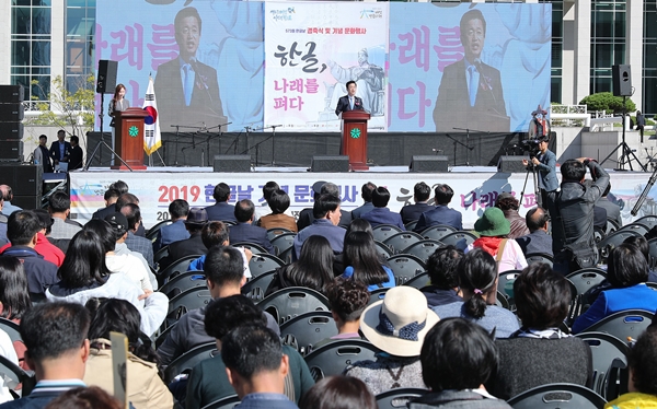 ´ëÀü½Ã´Â 9ÀÏ ¿ÀÀü 10½Ã ½Ãû ³²¹®±¤Àå¿¡¼­ ÁÖ¿ä ±â°ü․´ÜüÀå, ½Ã¹Î µî 700¿©¸íÀÌ Âü¼®ÇÑ °¡¿îµ¥ 573µ¹ Çѱ۳¯ °æÃà½Ä°ú ¹®È­Çà»ç¸¦ °³ÃÖÇß´Ù.