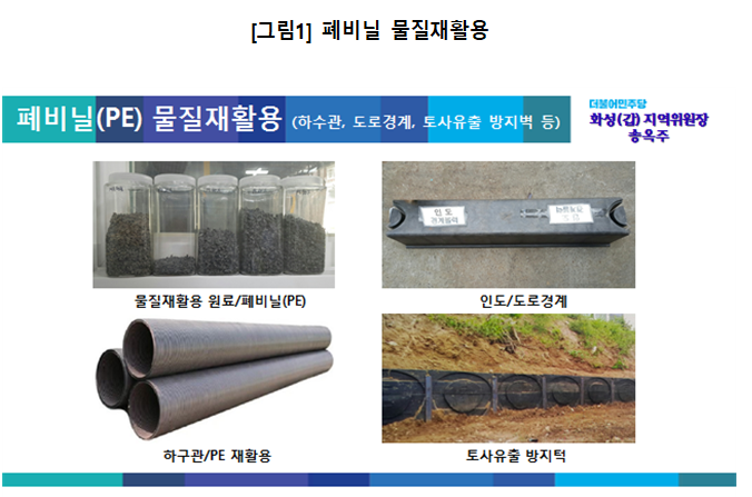 ¼Û¿ÁÁÖ ÀÇ¿øÀº ¡°SRF»Ó¸¸ ¾Æ´Ï¶ó ¹°ÁúÀçȰ¿ë(Material Recycling)À» ÃËÁøÇØ¾ß ÇÑ´Ù. Áö³ÇØ ¼ö°Å´ë¶õÀÇ ÇÙ½ÉÀ̾ú´ø Æóºñ´Ò°ú PVCÀÇ °æ¿ì ¹°ÁúÀçȰ¿ë ¹æ½ÄÀ¸·Î ģȯ°æ ó¸®ÇÒ ¼ö ÀÖ´Â °ÍÀ¸·Î È®ÀεƴÙ. PE¸¦ ³ì¿©¼ Çϼö°ü, µµ·Î°æ°è, °ü·Î¶Ñ²±, Åä»çÀ¯Ãâ ¹æÁöº® µî ´Ù¾çÇÑ ¹°Ç°À¸·Î ÀçȰ¿ë °¡´ÉÇÏ´Ù¡±°í ¸»Çß´Ù.
