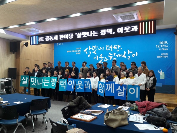 ÆòÅýÃ(½ÃÀå Á¤Àå¼±)°¡ 12ÀÏ ºñÀü1µ¿ ÇàÁ¤º¹Áö¼¾ÅÍ¿¡¼­ ¡®2019 ÆòÅýà ¾ÆÆÄÆ® °øµ¿Ã¼ ÇѸ¶´ç¡¯À» ¿­°í ¡®»ì¸À³ª´Â ÆòÅÃ, ÀÌ¿ô°ú ÇÔ²²»ìÀÌ¡¯¸¦ ÁÖÁ¦·Î °øµ¿ÁÖÅà °øµ¿Ã¼ Ȱ¼ºÈ­ ½Ã¹ü»ç¾÷ ¼º°ú °øÀ¯È¸¸¦ °¡Á³´Ù.