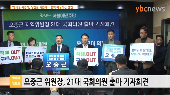 [Ä«¸Þ¶ó¸®Æ÷Æ®/ÇöÀåÃëÀç] ´õºÒ¾î¹ÎÁÖ´ç ¿ÀÁß±Ù ÆòÅÃëàÁö¿ªÀ§¿øÀå, 21´ë ÃѼ± °ø½Ä Ã⸶ ¼±¾ð -¡°ÆòÅÃÀ» »õ·Ó°Ô, ´ç½ÅÀ» ÀÌ·Ó°Ô!¡± ÆòÅà üÁú°³¼± ¼±¾ð |
