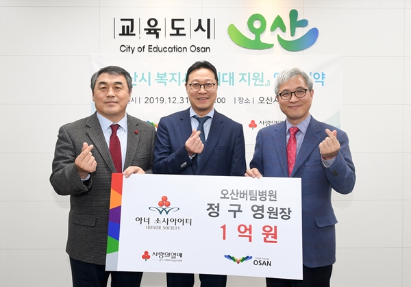 ¿À»ê½Ã´Â Áö³­ 12¿ù 31ÀÏ ¿À»ê¹öÆÀº´¿ø°ú(º´¿øÀå Á¤±¸¿µ) °æ±â»çȸº¹Áö°øµ¿¸ð±Ýȸ¿¡ 1¾ï¿ø ÀÌ»ó °í¾×±âºÎÀÚ ¸ðÀÓÀÎ ¾Æ³Ê ¼Ò»çÀÌ¾îÆ¼(honor society) ȸ¿ø °¡ÀÔ½Ä ¹× Èñ¸ÁÂù ³ª´®¹®È­ Á¶¼º°ú º¹Áö»ç°¢Áö´ë Áö¿ø ¾÷¹« Á¦ÈÞ Çù¾à½ÄÀ» °¡Á³´Ù.