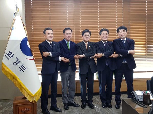 ÆòÅýÃ(½ÃÀå Á¤Àå¼±)¸¦ ºñ·ÔÇÑ ¡®¹Ì¼¼¸ÕÁö °øµ¿´ëÀÀ ÇùÀÇü¡¯ ¼Ò¼Ó ÁöÀÚüÀåµéÀÌ 13ÀÏ ¼¼Á¾½Ã Á¤ºÎû»ç ȯ°æºÎÀå°ü½ÇÀ» ¹æ¹®, Á¶¸í·¡ ȯ°æºÎÀå°üÀ» ¸¸³ª ¹Ì¼¼¸ÕÁö ¹®Á¦ÀÇ Àû±ØÀûÀÎ Çù·Â°ú Áö¿øÀ» ¿äûÇß´Ù.