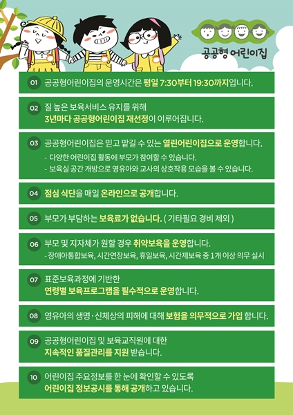 °ø°øÇü¾î¸°ÀÌÁýÀº ¿ì¼öÇÑ ¹Î°£, °¡Á¤¾î¸°ÀÌÁýÀ» ¼±Á¤, ±¹°¡¿Í ÁöÀÚü°¡ ¿î¿µºñ¸¦ Áö¿øÇØ ¾çÁúÀÇ º¸À°À» Á¦°øÇÏ°í °ø°ø º¸À° ÀÎÇÁ¶ó·Î¼ ±â´ÉÇÒ ¼ö ÀÖµµ·Ï ÇÏ´Â º¸À°½Ã¼³ÀÌ´Ù.