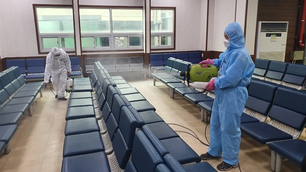 ¿©°´Å͹̳Π³» ¿ù 1ȸ ½Ç½ÃÇÏ´ø ¼Òµ¶À» Àü¹®¾÷ü¸¦ ÅëÇØ ÁÖ 3ȸ·Î °ÈÇßÀ¸¸ç, Å͹̳Π³» Àü±¤ÆÇ ¼ÛÃâ ¹× ¾È³»¹æ¼ÛÀ» ÅëÇÑ °¨¿°º´ ¿¹¹æ¼öÄ¢ È«º¸, ¸¶½ºÅ© ‧ ¼Õ¼Òµ¶Á¦ ºñÄ¡ µî Áö¼ÓÀûÀ¸·Î ¼±»ç ‧ ºÎµÎ¿î¿µ»ç ‧ Ç׿î³ëÁ¶, CIQ±â°ü°ú Àû±ØÀûÀÎ ÇùÁ¶¸¦ ÅëÇØ ½ÅÁ¾ Äڷγª¹ÙÀÌ·¯½º È®»ê ¹æÁö¿¡ Èû¾µ ¿¹Á¤ÀÌ´Ù.
