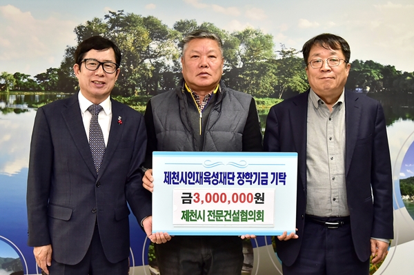´ëÇÑÀü¹®°Ç¼³Çùȸ ÃæÃ»ºÏµµÈ¸ Á¦Ãµ½ÃÇùÀÇȸ(ȸÀå ±è±âÈ£)´Â Áö³ 7ÀÏ Áö¿ª û¼Ò³âµéÀ» À§ÇÑ 300¸¸¿øÀÇ ÀåÇбÝÀ» Á¦Ãµ½ÃÀÎÀçÀ°¼ºÀç´Ü(ÀÌ»çÀå ÁöÁßÇö)¿¡ ±âŹÇß´Ù.
