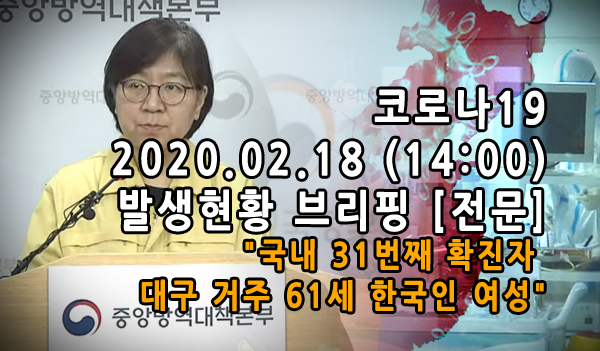 2020³â 2¿ù 18ÀÏ 9½Ã ÇöÀç Ãß°¡È®ÁøÈ¯ÀÚ 1¸íÀ» Æ÷ÇÔÇÏ¿© ÃÑ 31¸íÀÌ È®ÁøµÇ¾ú½À´Ï´Ù.