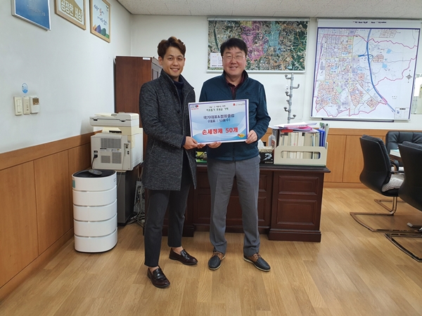 °æ±â ¿À»ê½Ã ¿øµ¿ ¼ÒÀç ±¹°¡´ëÇ¥&Á¡ÇÎŬ·´ÀÌ Ãë¾à°èÃþ Äڷγª19 ¿¹¹æÀ» À§ÇØ ¼Õ¼Òµ¶Á¦ 50°³¸¦ ´ë¿øµ¿ÇàÁ¤º¹Áö¼¾ÅÍ¿¡ ±âºÎÇß´Ù.