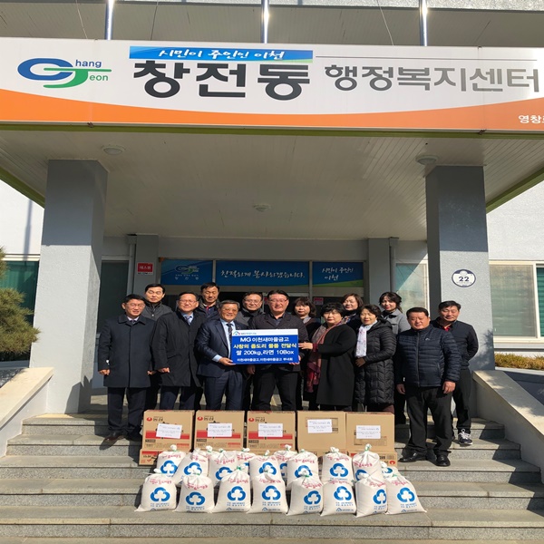 ÀÌõ»õ¸¶À»±Ý°í(ÀÌ»çÀå ±èÁ¤Áø)´Â 24ÀÏ Ã¢Àüµ¿ÇàÁ¤º¹Áö¼¾Å͸¦ ¹æ¹®ÇÏ¿© °æÁ¦Àû ¾î·Á¿òÀ» °Þ°í ÀÖ´Â °¡±¸¿¡ Áö¿øÇØ ´Þ¶ó¸ç ¹é¹Ì20Æ÷(10kg)¿Í ¶ó¸é10¹Ú½º¸¦ Àü´ÞÇÏ¿´´Ù.