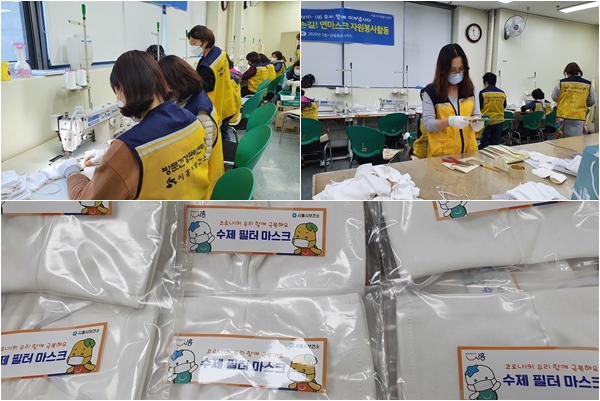 ½ÃÈï½Ã ¹æ¹® °£È£»ç µî ÀÚ¿øºÀ»çÀÚµéÀÌ Äڷγª19·Î ÀÎÇÑ ¸¶½ºÅ© ºÎÁ·»çŸ¦ ±Øº¹Çϱâ À§ÇØ ÇÊÅͱ³Ã¼°¡ °¡´ÉÇÑ ¼öÁ¦ ¸é ¸¶½ºÅ© ¸¸µé±â¿¡ µ¹ÀÔÇß´Ù.