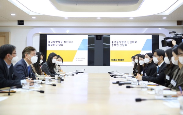 ÀÌÀç¸í, Áß±¹µ¿¹æÇ×°ø Áý´ÜÇØ°í ½Â¹«¿ø ¹× ¹ý·ü´ë¸®Àΰú °£´ãȸ °¡Á® - ÃÖ±Ù ÇÑ-Áß ³ë¼± ¿î¿µ °ï¶õ¿¡ µû¸¥ °æ¿µ ¾ÇÈ µîÀÇ »çÀ¯·Î ºÎ´çÇØ°í Å뺸¹Þ¾Æ |