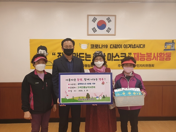 Äڷγª19·Î ¸¶½ºÅ© °ø±ÞÀÌ ¾î·Á¿ö ÇÊ¿äÇÑ °÷¿¡¼­ ¸¶½ºÅ©°¡ ºÎÁ·ÇÏ´Ù´Â ¼Ò½ÄÀ» ÀüÇØµéÀº °í»öÀüÅë³ó¾Çº¸Á¸È¸ ȸ¿øµéÀº º»Àε鵵 1½Ã°£¾¿ ±â´Ù¸®¸ç ±¸ÀÔÇÑ °øÀû¸¶½ºÅ©¸¦ 1¸Å 1¸Å ½Ê½ÃÀÏ¹Ý ¸ð¾Æ ÃÑ 65¸Å¸¦ Æòµ¿ÇàÁ¤º¹Áö¼¾ÅÍ¿¡ Àü´ÞÇß´Ù.