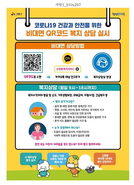 ½ÃÈï½Ã ½ÅÇöµ¿ ÇàÁ¤º¹Áö¼¾ÅÍ, "QRÄÚµå º¹Áö»ó´ãÀ¸·Î ºñ´ë¸é ¼ºñ½º Áö¿ø ¹ÞÀ¸¼¼¿ä" - Äڷγª19 È®»êÀ¸·Î ¾î·Á¿ò °Þ´Â Áֹε鿡 Áï°¢ÀûÀÎ ºñ´ë¸é ¼ºñ½º Áö¿ø Á¦°ø |