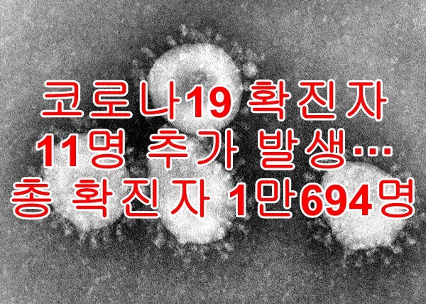 Äڷγª19 È®ÁøÀÚ°¡ ÇÏ·ç»õ 11 ¸í Áõ°¡Çß´Ù. ÀÌ·Î ÀÎÇØ ±¹³» ÃÑ È®ÁøÀÚ ¼ö´Â 0½Ã ±âÁØ 1¸¸694¸íÀ¸·Î ´Ã¾ú´Ù.