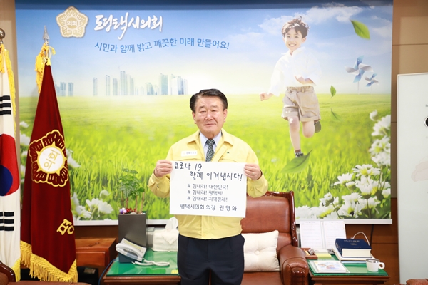 ½Å¿øÁÖ ¾È¼º½ÃÀÇȸ ÀÇÀåÀ¸·ÎºÎÅÍ Áö¸íÀ» ¹ÞÀº ±Ç¿µÈ ÀÇÀåÀº ¡°#Èû³»¶ó! ´ëÇѹα¹! #Èû³»¶ó! ÆòÅýÃ! #Èû³»¶ó Áö¿ª°æÁ¦!¡±¶ó´Â ¹®±¸°¡ ÀûÈù Ä«µå¸¦ µé°í Èñ¸Á ¸Þ½ÃÁö¸¦ Àü´ÞÇß´Ù.