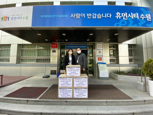 ¼ö¿ø½ÃÀÚ¿øºÀ»ç¼¾ÅÍ¿Í ¼ö¿ø»ó°øÈ¸ÀǼҴ ÀϺ» ÇöÁö ±â¾÷¿¡ Ãë¾÷ÇÑ ¼ö¿ø û³â 110¿© ¸í¿¡°Ô ¸é¸¶½ºÅ© 1000Àå°ú ±è 600°³ µî ÈÄ¿ø ¹°Ç°À» º¸³Â´Ù.