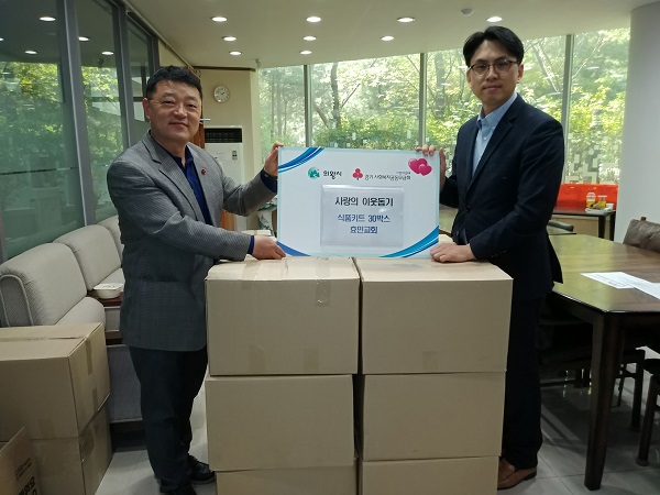 Àǿսà ³»¼Õ1µ¿¿¡ ¼ÒÀçÇÑ È¿¹Î¼º°á±³È¸´Â Áö³ 6ÀÏ Äڷγª19·Î ¾î·Á¿òÀ» °Þ°í ÀÖ´Â ÁÖº¯ ÀÌ¿ô¿¡°Ô ÀüÇØ ´Þ¶ó¸ç ½Ò, ±è, ¶ó¸é µîÀÌ µé¾îÀÖ´Â ½Ä·áǰŰƮ 30¹Ú½º¸¦ µ¿ Áֹμ¾ÅÍ¿¡ ±âŹÇß´Ù.