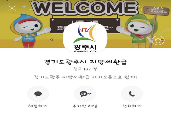 ±¤ÁÖ½Ã, īī¿ÀÅå Ç÷¯½º Ä£±¸ Ȱ¿ë 'Áö¹æ¼¼ ȯ±Þ½Åû ¼ºñ½º' ½ÃÇàÇÑ´Ù - ½Åû ¹æ¹ý, '°æ±âµµ ±¤Áֽà Áö¹æ¼¼ ȯ±Þ' īī¿ÀÅå ä³Î Ãß°¡ ÈÄ ÀÎÀû»çÇ× ±âÀÔ |