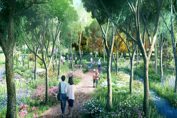 ¹æ¹®ÀÚ¼¾ÅÍ¿Í Àü½Ã¿Â½Ç µîÀÇ °ÇÃ๰Àº ¶¥ÀÇ È帧°ú ÁöÇü¿¡ ¼øÀÀÇϵµ·Ï Çü»óÈ­Çϰí ÁöÇü ·¹º§À» ÀÀ¿ëÇÑ ¿ÀºêÁ¦¸¦ ÅëÇØ ÀÚ¿¬ÀÇ È帧ÀÌ ±×´ë·Î À̾îÁöµµ·Ï °èȹµÆ´Ù.