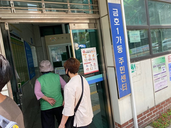 ±ä±ÞÀç³­Áö¿ø±Ý ½ÅûÀ» À§ÇØ ÁֹεéÀÌ ±ÝÈ£1°¡µ¿ Áֹμ¾ÅÍ¿¡ µé¾î°¡°í ÀÖ´Ù.
