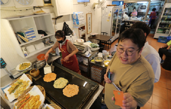 À̵éÀÌ Ã³À½ ¹æ¹®ÇÑ °÷Àº ´ödz½ÃÀå ³» ÇÑ ÂþÁýÀ¸·Î ²ÉÀ¸·Î ¸¸µç ½Ã¿øÇÑ À½·á¸¦ ÁÖ¹®Çϸç Çϳ²½Ã Áö¿ªÈÆó ¡®ÇϸӴϡ¯Ä«µå·Î °áÁ¦Çß´Ù. ÀÌÈÄ ÀüÁýÀ» ¹æ¹®ÇØ Àü ¸Ô¹æÀ» º¸¿©Áà ½ÃûÀÚµéÀÇ ±ºÄ§À» µ¹°Ô Çß´Ù. ÀÌ¾î ¼º³âÀÇ ³¯À» ¸ÂÀº º¸Á¶Ã⿬ÀÚµéÀ» À§ÇØ ±Ùó ²ÉÁý¿¡¼ ²ÉÀ» ¼±¹°Çß°í ¸¶Áö¸·À¸·Î ¹æ¹®ÇÑ °úÀϰ¡°Ô¿¡¼µµ °æ±âµµ À糱⺻¼ÒµæÀ» ¾ËÂ÷°Ô Ȱ¿ëÇÏ´Â ¸ð½ÀÀ» º¸¿©Áá´Ù.