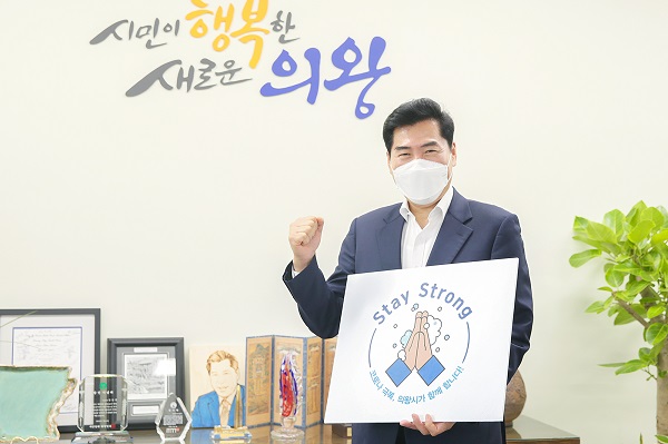 ½ºÅ×ÀÌ ½ºÆ®·Õ Ä·ÆäÀÎÀº ºñ´©°ÅǰÀ¸·Î µÎ ¼ÕÀ» ¸ð¾Æ ±âµµÇÏ´Â ±×¸²¿¡¡®Stay Strong¡¯À̶õ ¹®±¸¸¦ Àû¾î °³ÀÎÀ§»ý Áؼö·Î Äڷγª19 »çŸ¦ À̰ܳ»ÀÚ´Â Àǹ̸¦ ´ã°í ÀÖ´Ù.