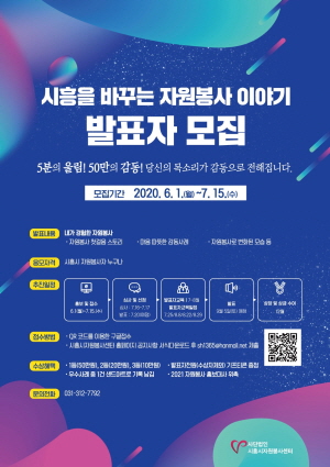 Á¢¼ö´Â È«º¸ Æ÷½ºÅÍÀÇ QRÄڵ带 ÀÌ¿ëÇÑ ±¸±Û Á¢¼ö, ½ÃÈï½ÃÀÚ¿øºÀ»ç¼¾ÅÍ È¨ÆäÀÌÁö¿¡¼ Áö¿ø ¼½ÄÀ» ³»·Á¹Þ¾Æ ¿Â¶óÀÎ ½ÅûÇÏ¸é µÈ´Ù. 1~3µî ¼ö»óÀÚ¿¡°Ô´Â »ó±ÝÀ» ¼ö¿©Çϸç, ¹ßÇ¥Àڵ鿡°Ô´Â ±âÇÁƼÄÜ µî ¼ÒÁ¤ÀÇ ¼±¹°ÀÌ ÁغñµÅÀÖ´Ù.