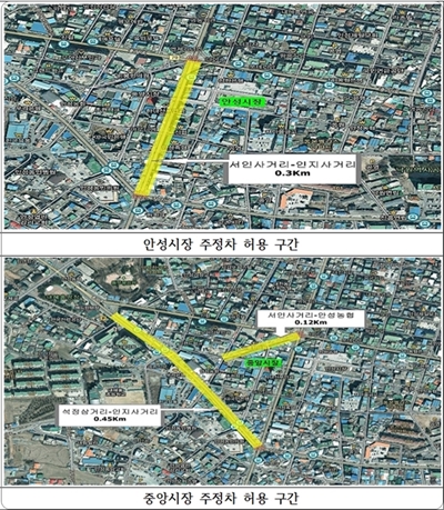 ÁÖ¡¤Á¤Â÷ Çã¿ëµµ·Î´Â ¾È¼º½ÃÀå(¼­Àλç°Å¸®~ÀÎÁö»ç°Å¸® ±¸°£ ¾çÃø 300¹ÌÅÍ)°ú Áß¾Ó½ÃÀå(¼­Àλç°Å¸®~¾È¼º³óÇù ¾çÃø 120¹ÌÅÍ, ¼®Á¤»ï°Å¸®~ÀÎÁö»ç°Å¸® ¾çÃø 450¹ÌÅÍ) ÁÖº¯µµ·ÎÀÌ´Ù.