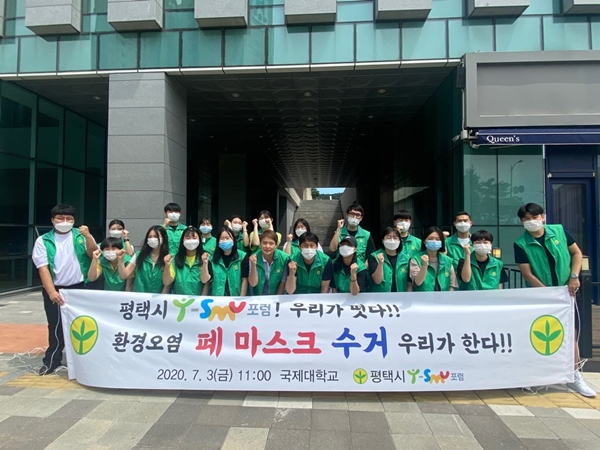 ȸÀåÀº ¡°ÆòÅýÃY-SMUÆ÷·³ ±¹Á¦´ëÇб³ ȸ¿øµéÀÇ Æó¸¶½ºÅ© ¼ö°Å Ȱµ¿À¸·Î Ȥ½Ã ¹ß»ýÇÒ ¼ö ÀÖ´Â Äڷγª19 2Â÷ °¨¿°À» ¿¹¹æÇϰí, ȯ°æÁ¤È¸¦ ÅëÇÑ ±ú²ýÇÑ °Å¸® ¸¸µé±â¿¡ µµ¿òÀÌ µÉ ¼ö ÀÖ¾î »ÑµíÇÏ´Ù.¡±¸ç, ¡°¸¶½ºÅ© »ç¿ë°ú ¹æ¿ªµµ Áß¿äÇÏÁö¸¸, Æó¸¶½ºÅ© ¼ö°Å ¹× ÀçȰ¿ë ¹æ¾Èµµ ÇÊ¿äÇÏ´Ù.¡±°í ¸»Çß´Ù.