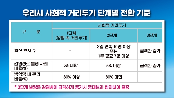 ÇãÅÂÁ¤ ½ÃÀåÀº »çȸÀû °Å¸®µÎ±â ´Ü°èÀÇ »óÇâ ±âÁذú °ü·ÃÇØ ¡°È®Áø ȯÀÚ ¼ö ±âÁØ, 3ÀÏ ¿¬¼Ó 10¸í ÀÌ»ó ¹ß»ýÇϰųª ÁÖ´ç Æò±Õ 1ÀÏ 7¸íÀÌ»ó ¹ß»ýÇÒ °æ¿ì, °¨¿°°æ·Î°¡ ºÒºÐ¸íÇÑ »ç·Ê ¹ß»ý ºñÀ²ÀÌ 5% ÀÌ»óÀÏ °æ¿ì, ¹æ¿ª¸Á ³» °ü¸® ºñÀ²ÀÌ 80%¹Ì¸¸ÀÏ °æ¿ì µîÀ» Á¾ÇÕÀûÀ¸·Î °ËÅäÇØ ´Ü°è Á¶Á¤À» °áÁ¤ÇÒ °Í¡±À̶ó°í ±âÁØÀ» ¹àÇû´Ù.