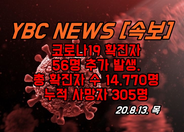 13ÀÏ(AHR) 0½Ã ±âÁØ, ±¹³» Äڷγª19 ½Å±Ô È®ÁøÀÚ°¡ 56¸í Ãß°¡µÆ´Ù.