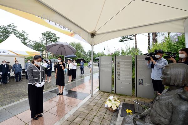 Àº¼ö¹Ì ¼º³²½ÃÀåÀº ÀϺ»±ºÀ§¾ÈºÎ ÇÇÇØÀÚ ±â¸²ÀÇ ³¯À» ¸Â¾Æ 14ÀÏ ¿ÀÀü ½Ãû ±¤Àå ÆòÈÀÇ ¼Ò³à»ó ¾Õ¿¡¼ ¿¸° Ã߸ð½Ä¿¡ Âü¼®Çß´Ù.