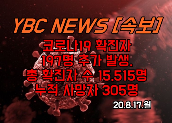 17ÀÏ(¿ù) 0½Ã ±âÁØ, ±¹³» Äڷγª19 ½Å±Ô È®ÁøÀÚ°¡ 197¸í Ãß°¡µÆ´Ù.