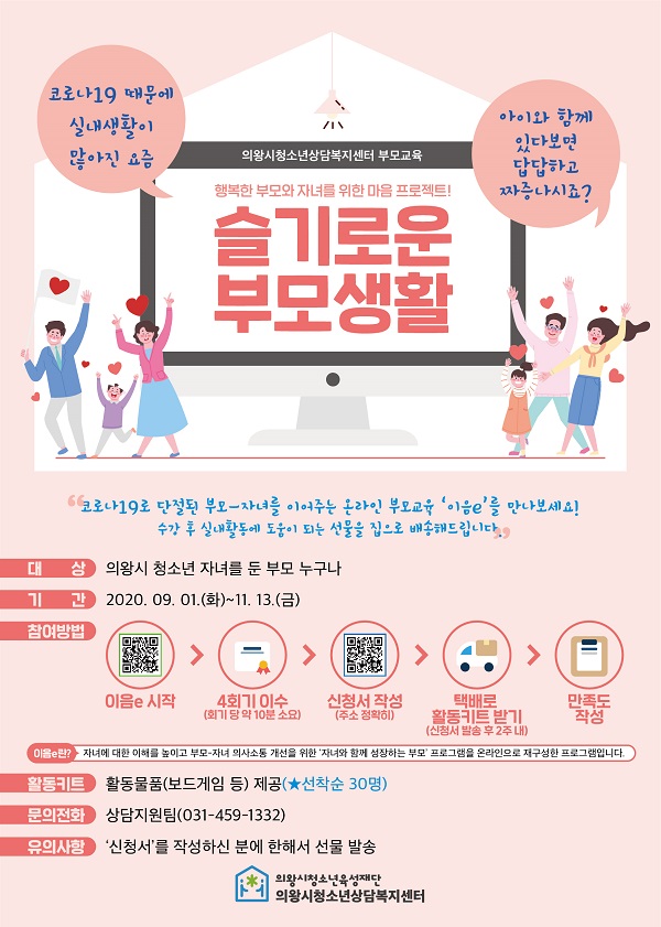 ÀÌ¿¡ û¼Ò³â»ó´ãº¹Áö¼¾ÅÍ¿¡¼­´Â Äڷγª19·Î ÀÎÇÑ ºÎ¸ð-Àڳణ °¥µîÀ» ÇØ¼ÒÇÏ°í °Ç°­ÇÑ °¡Á·¹®È­ Çü¼ºÀ» À§ÇÑ ºÎ¸ð±³À°À» ÁøÇàÇϱâ·Î Çß´Ù. ¶ÇÇÑ, ¿Â¶óÀÎ ºÎ¸ð±³À°¡®ÀÌÀ½e¡¯¸¦ À̼öÇÑ ÈÄ ½Åû¼­¸¦ ÀÛ¼ºÇÏ¸é ½Ç³» ¹®È­»ýȰ¿¡ µµ¿òÀÌ µÇ´Â Ȱµ¿¹°Ç°ÀÌ Á¦°øµÈ´Ù.