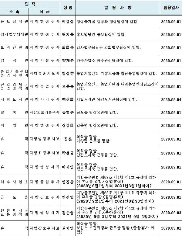 ¾È¼º½Ã, 2020³â 9¿ù 1ÀÏÀÚ Àλç¹ß·É »çÇ×