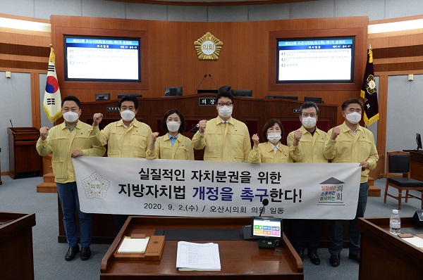 ¿À»ê½ÃÀÇȸ(ÀÇÀå ÀåÀμö)´Â ÇöÀç ±¹È¸¿¡ Á¦ÃâµÇ¾î ÀÖ´Â Áö¹æÀÚÄ¡¹ý ÀüºÎ°³Á¤¾ÈÀÇ ¼öÁ¤À» Ã˱¸ÇÏ°í ³ª¼¹´Ù.