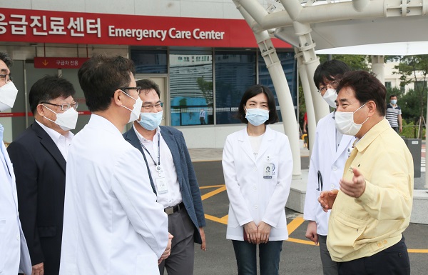 À̳¯ ¹é ½ÃÀåÀº ¿ëÀÎ ¼¼ºê¶õ½ºº´¿ø, °­³²º´¿ø, ´Ùº¸½ºº´¿ø, ¿ëÀμ­¿ïº´¿ø µî 4°÷À» Â÷·Ê·Î ¹æ¹®ÇØ ¼±º°Áø·á¼Ò ±Ù¹« ÀÇ·áÁøµé¿¡°Ô °¨»çÀÇ ¸¶À½À» ÀüÇÏ°í °Ý·ÁÇß´Ù.