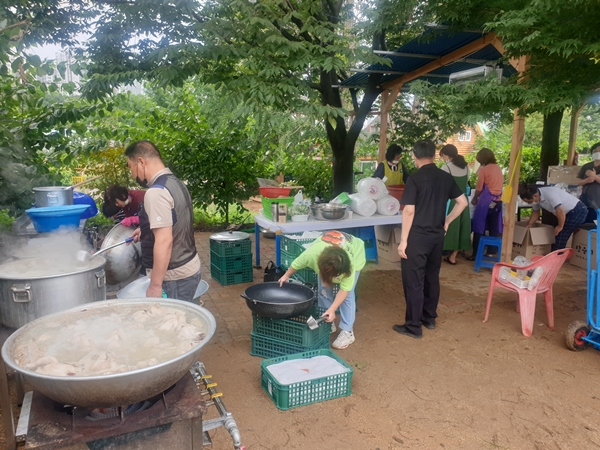 ¼­Á¤Áö±¸´ë »ýȰ¾ÈÀüÇùÀÇȸ ºÀ»çÀÚµéÀº Àü³¯ºÎÅÍ Àλï, ´ëÃß, ¸¶´ÃÀ» ³Ö¾î ¸¸µç ´ßÀ» Á÷Á¢ Æ÷ÀåÇØ 500±×¸©À» ÁغñÇß´Ù.