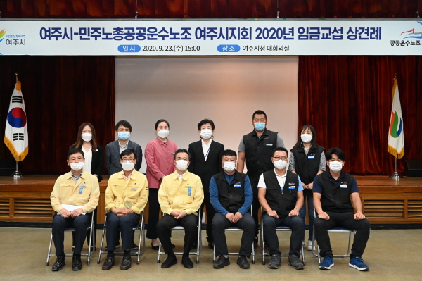¿©ÁÖ½Ã(½ÃÀå ÀÌÇ×Áø)´Â Áö³­ 23ÀÏ ½Ãû ´ëȸÀǽǿ¡¼­ ¿©ÁÖ½Ãû °ø¹«Á÷±Ù·ÎÀÚ ´ÜÀϳëÁ¶ÀÎ ¹ÎÁÖ³ëÃÑ °ø°ø¿î¼ö³ëÁ¶ ¿©ÁÖ½ÃÁöȸ¿Í 2020³â Àӱݱ³¼· ÇùÀǸ¦ À§ÇÑ »ó°ß·Ê¸¦ ¸¶·ÃÇß´Ù.