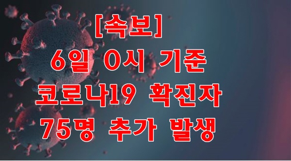 6ÀÏ 0½Ã ±âÁØ, Äڷγª19 È®ÁøÀÚ°¡ 75¸í Ãß°¡µÆ´Ù.