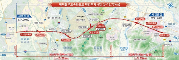 ÆòÅýà Á׹鵿¿¡¼­ ¿À»ê½Ã °¥°ùµ¿±îÁö ¾à 15.77km¸¦ ¿¬°áÇÏ´Â ¿Õº¹ 4~6Â÷·ÎÀÇ ÀÚµ¿Â÷Àü¿ëµµ·Î·Î ¹Î°£»ç¾÷ÀÚ¿Í LH¿¡¼­ »ç¾÷ºñ Àü¾×À» ºÎ´ãÇÑ´Ù.