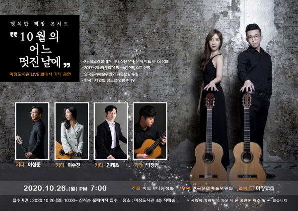 À̹ø ÇູÇÑ Ã¥¹æ ÄܼƮ <10¿ùÀÇ ¾î´À ¸ÚÁø ³¯¿¡>´Â Çѱ¹¹®È¿¹¼úÀ§¿øÈ¸°¡ ÈÄ¿øÇϰí Ŭ·¡½Ä ±âŸ ÇÕÁÖÀÇ »õ ÁöÆòÀ» ¿¾î°¡°í ÀÖ´Â ±¹³» ÃÖ°íÀÇ Å¬·¡½Ä ±âŸ¸®½ºÆ® 4ÀÎÀ¸·Î ±¸¼ºµÈ ¡®ºñÅä±âŸ¾Ó»óºí¡¯ÀÌ Ã⿬ÇÑ´Ù.