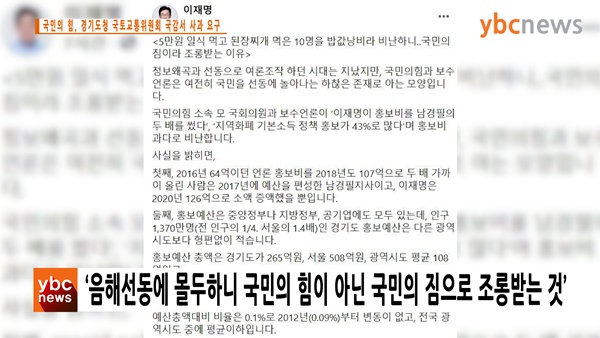 À̳¯ ÀÌÀç¸í °æ±âµµÁö»ç°¡ sns¿¡ ¿Ã¸° ¡®±¹¹ÎÀÇ Áü¡¯À̶õ Ç¥ÇöÀ» ³õ°í ¼³ÀüÀÌ ¹ú¾îÁ® ¾ß´ç ÀÇ¿øµéÀÌ ±¹°¨À» Áß´ÜÇÏ´Â µîÀÇ ÆÄÇàÀÌ ºú¾îÁ³½À´Ï´Ù.]